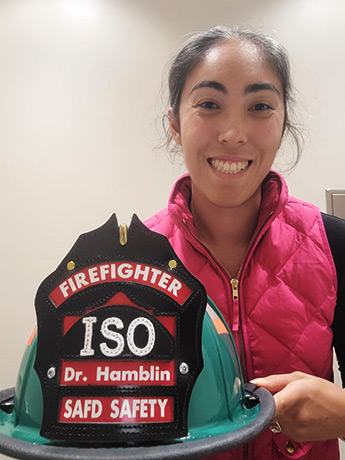 Since 2019, I have been volunteering with the San Antonio Fire Department as part of their Occupational Cancer Committee. It all started with an EMS ride out at Station 13 in medical school where I asked, how can I better help you as a physician? The resounding answer was cancer care and prevention as their friends were getting cancer and dying. I thought, "I'm getting my MD/MPH. I can do that." Since then, I've been fortunate to help them work on extinguishing cancer by collaborating on firefighter cancer prevention research with local, national, and international partners; teaching at the fire training academy; advocating for occupational cancer prevention and treatment at local, state, and national levels; assisting with cancer screenings; educating physicians, medical students, and firefighters on occupational cancer; and riding out with SAFD.